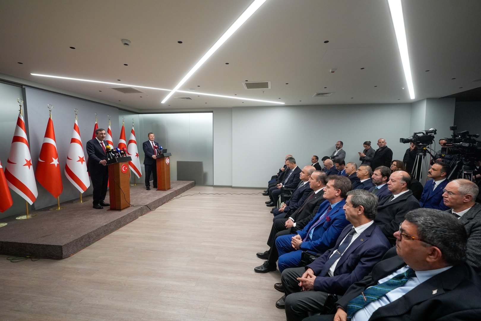 "Ülkede uzun yıllar sağlanamayan, her yıl bozulan hükümetlerin aksine, dördüncü yılına siyasi istikrarını bozmadan giren bir hükümetiz. Hükümetimiz, KKTC tarihinin son dönemlerdeki kurulmuş en uzun soluklu hükümetidir. Bu istikrar sayesindedir ki, tüm ortak projelerde ve imzalanan tüm iktisadi ve mali işbirliği anlaşmalarında en yüksek gerçekleşme oranlarını sağladık. Yıllardır yarım kalan projeleri tamamlıyor, yıllardır yapılmayan reformları hayata geçiriyoruz."
