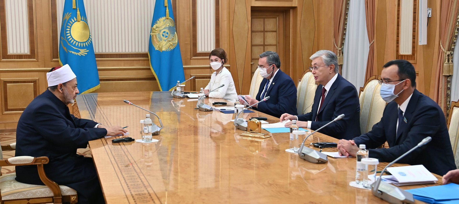 Tokayev, görüşmede, davetini kabul eden Ahmet et Tayyib’e teşekkür ederek, “Başkanlığınızdaki El-Ezher Üniversitesini ortak dinimiz İslam’ın değerlerinin ışığını yayan bir fener olarak görüyoruz.” dedi.