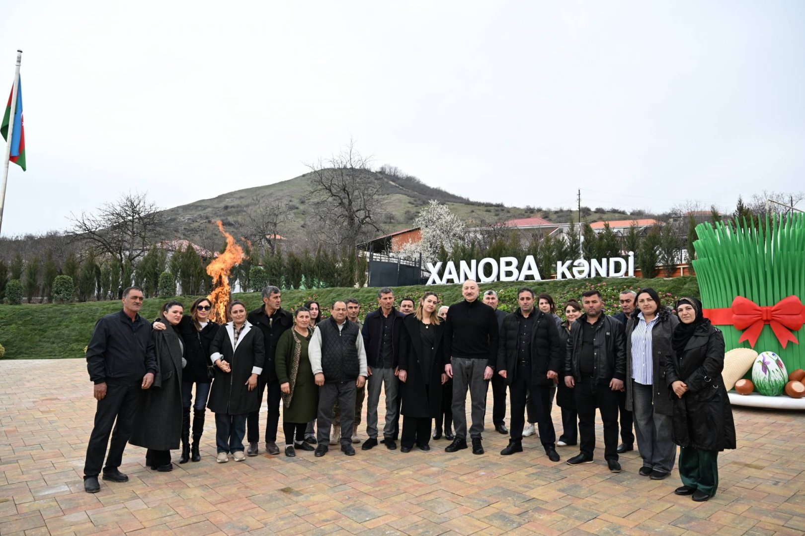 Köy sakinleriyle bir süre sohbet eden Aliyev, daha sonra eşi Mihriban Aliyeva ile birlikte Nevruz ateşini yaktı.