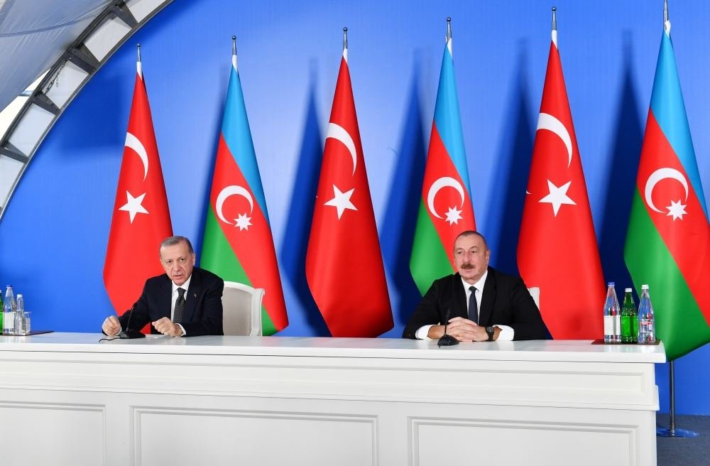 Azerbaycan’a resmi ziyarette bulunan Cumhurbaşkanı Erdoğan, İlham Aliyev ile ortak basın toplantısında konuştu. Ermenistan işgalinden kurtarılan topraklarda kalkınma destanının yazıldığını ifade eden Erdoğan, yeni bir Azerbaycan’ın inşa edildiğini söyledi. Karabağ’ın adeta küllerinden doğduğunu dile getiren Erdoğan, Ermenistan işgali döneminde yapılan tahribin tazmini için Lahey’e gidilmesi gerektiğini vurguladı. Erdoğan, Zengezur Koridoru için “Zengezur Koridoru konusunda bazı çevrelerdeki korku ve endişeler bana göre yersizdir” ifadelerini kullandı.