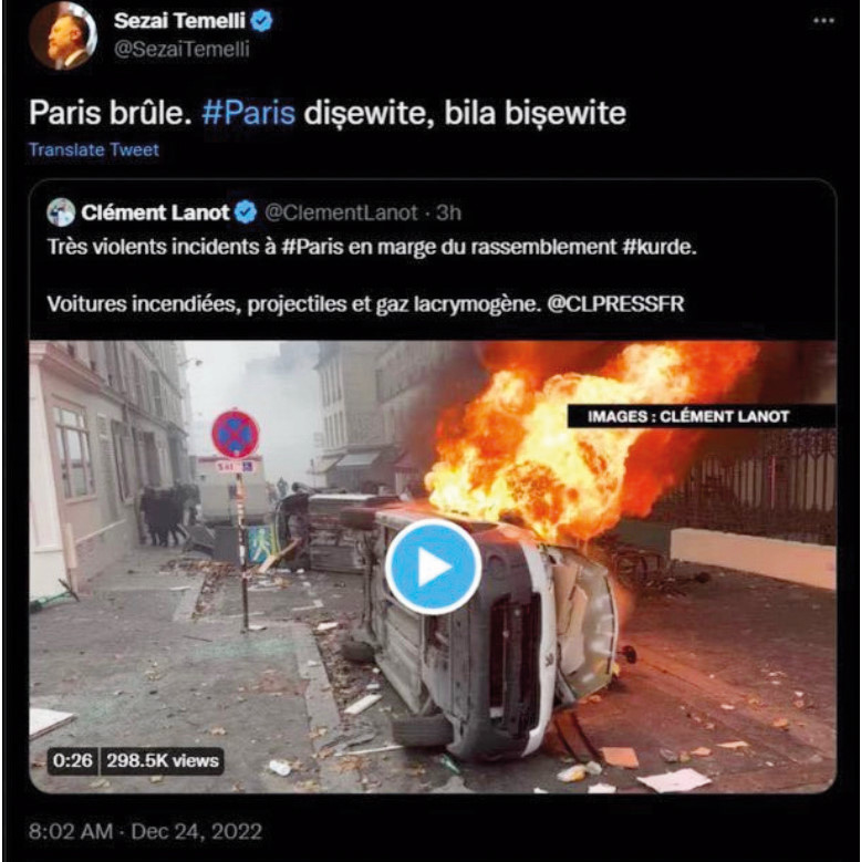 Fransa’nın başkenti Paris’te Ahmet Kaya Kültür Merkezi adıyla bilinen binanın olduğu Enghien Caddesi’nde saldırı düzenlendi. Sabıkalı ırkçı olduğu belirlenen 69 yaşındaki Fransız vatandaşı William M. tarafından gerçekleştirilen saldırıda 3 kişi hayatını kaybetti. Saldırı sonrası terör örgütü PKK destekçileri Paris’i adeta ateşe verdi. Hristiyanlar için kutsal sayılan Noel günü arifesinde başta Fransa’nın başkenti Paris olmak üzere Marsilya gibi şehirlerde sokakları terörize eden PKK’lı gruplar polisle çatıştı. PKK yanlısı grup alandaki polislere saldırdı, araçları yaktı ve dükkanlara da zarar verdi. Terör destekçilerinin yol açtığı şiddet olaylarında en az 31 Fransız polisi yaralandı. Bazı kişiler gözaltına alınırken polis ekiplerinin olayla ilgili soruşturması ise sürüyor. Paris’i yakıp yıkan terör örgütü yandaşlarına bir destek de HDP’den geldi. PKK’nın Avrupa’daki en büyük destekçisi Fransa ise PKK’lıların şehri yakıp yıkmasından dolayı adeta şaşkınlık içinde kaldı.