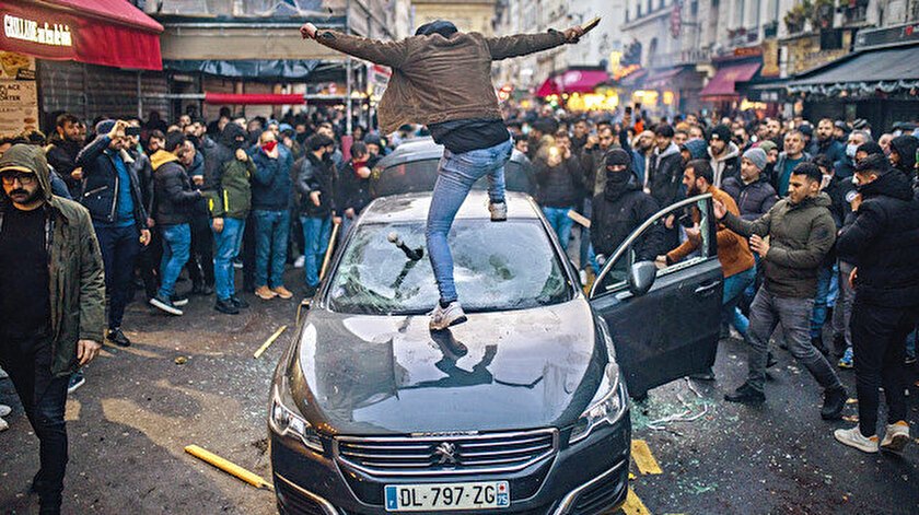 PKK’nın bir numaralı hamisi Fransa, desteklediği teröristlerin Paris’i yakıp yıkmasıyla şaşkın. PKK’lı teröristler, bir ırkçının 3 kişiyi öldürdüğü saldırıyı bahane ederek Noel kutlamasına hazırlanan başkentte araçları yaktı, iş yerlerine zarar verdi ve polisle çatıştı. Fransız yetkililer vandallara nasıl tepki göstereceklerini bilemezken sosyal medyada birçok kişi “ihanete uğradık” dedi.