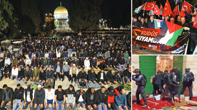 İsrail güçlerinin, iki gündür teravih ve sabah namazlarında Mescid-i Aksa’ya düzenlediği baskınlar ve kutsal mabette ibadet edenlere uyguladığı şiddet hız kesmeden devam ediyor. Tepkilere rağmen İsrail güçleri, fanatik Yahudi yerleşimcilerin Aksa’ya girişlerini kolaylaştırmak için burada ibadet eden ve itikafa giren Müslümanları önceki gün teravih namazının ardından şiddet kullanarak mescitten çıkardı ve bir daha girişlere izin vermedi.