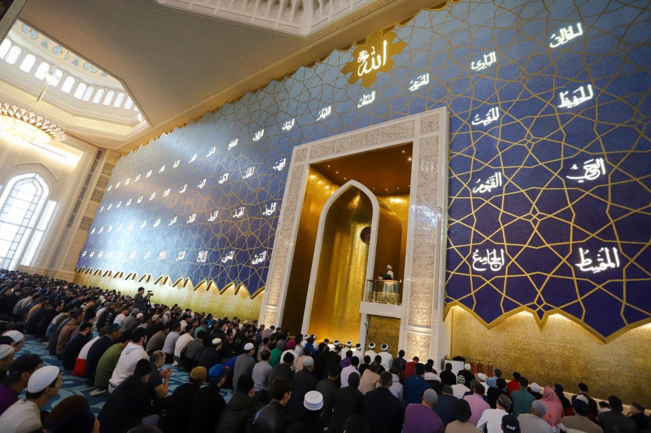 Kazaklar, Ramazan Bayramı namazını kılmak amacıyla sabahın erken saatlerinde camileri doldurdu. Başmüftü Nauryzbay Taganuly da bayram namazını kılmak için Astana’daki Büyük Cami’de saf tuttu.