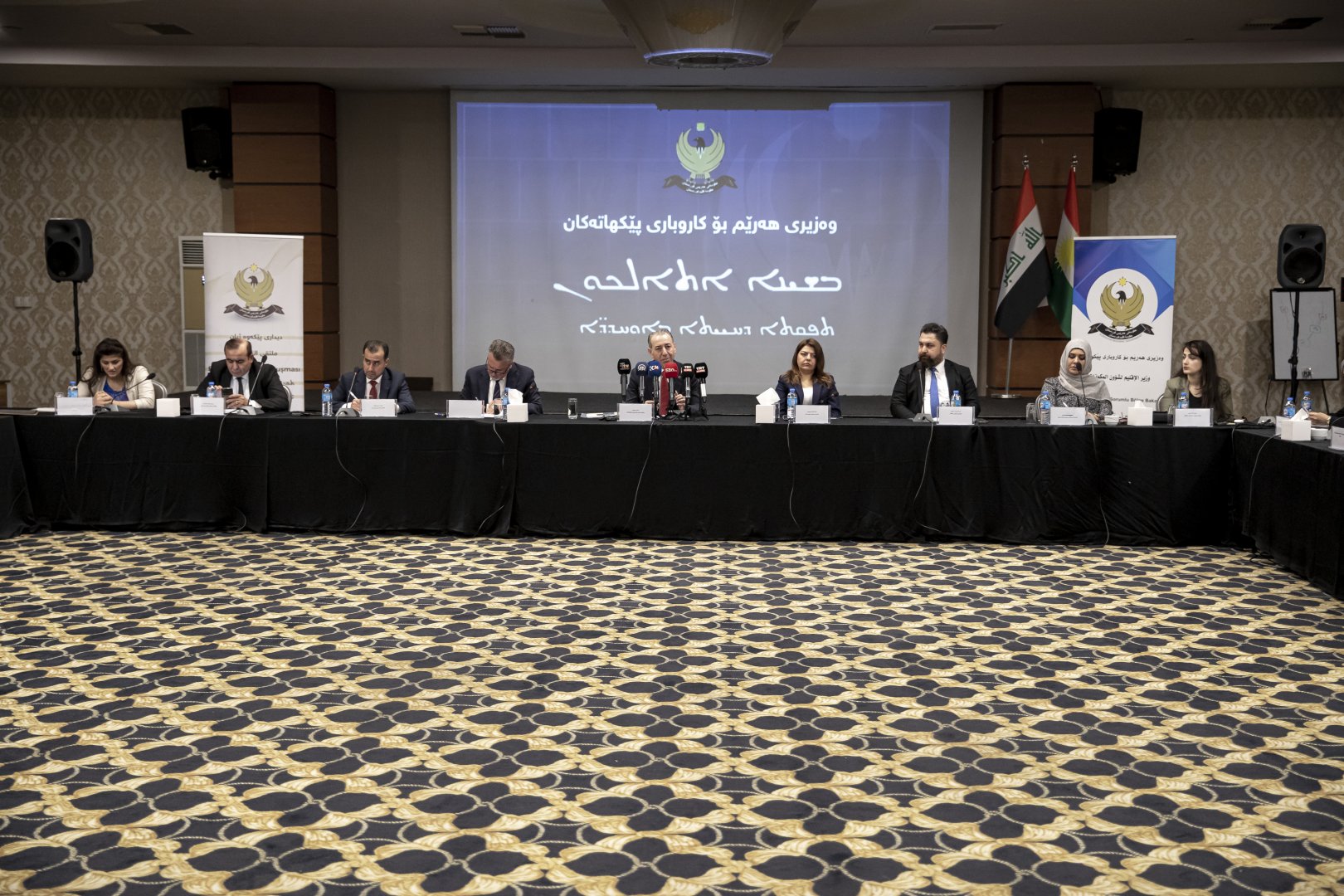 Türkmen Bakan Maruf, Erbil'de diplomatik misyonlar, siyasiler, etnik ve dini gruplardan temsilcilerin katılımıyla düzenlenen "Birlikte Yaşam" konulu konferansta konuştu.