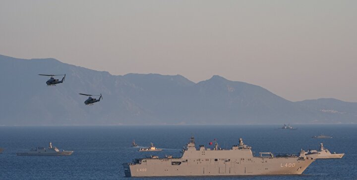 Tatbikat sırasında, yarınki bölümde yer alacak olan TCG Anadolu gemisi de yerini aldı.