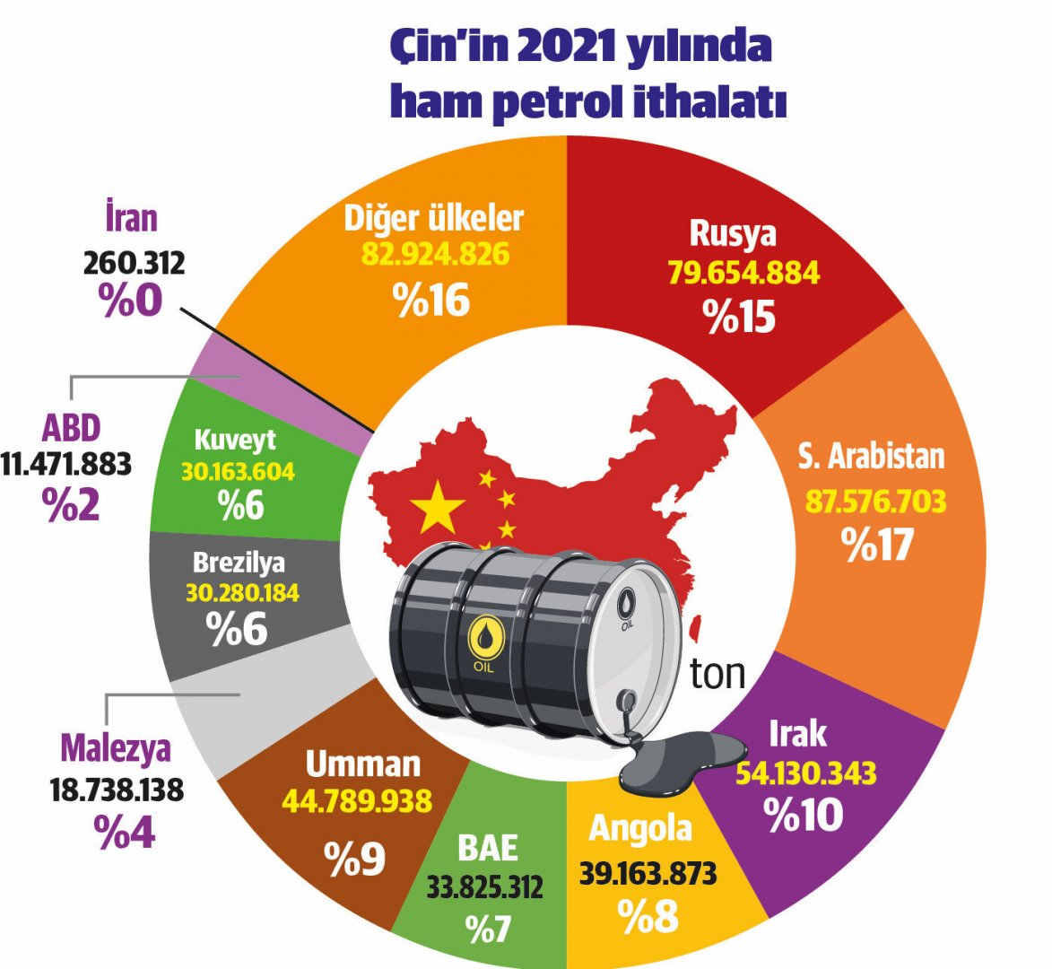 Şi Cinping, Körfez ülke liderleriyle yaptığı görüşmelerden sonra, ülkesinin amacının sadece bu ülkelerden enerji ithalatını artırmak değil, enerji alanında çok boyutlu bir iş birliğinin temelini de atmak olduğunu açıklamıştı. OPEC üye ülkelerinin kanıtlanmış petrol rezervlerinin yüzde 40’ına sahip olan Rusya, İran ve Venezuela, Çin’e indirimli fiyattan petrol satmaya devam ediyor. 2021 verilerine göre Çin, petrol ithalatının yaklaşık yüzde 80’ini Suudi Arabistan, Rusya, Irak, Angola, Birleşik Arap Emirlikleri, Umman ve Kuveyt’ten yapıyor.