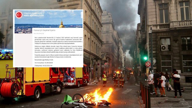 Açıklamada, "Söz konusu olaylar dikkate alınarak, başta Paris olmak üzere, Fransa'da bulunan vatandaşlarımızın veya Fransa'ya seyahat edecek vatandaşlarımızın azami teyakkuzu göstermeleri ve olası gösteri alanları ile yakın çevreden uzak durmaları, muhtemel olayların gelişimini yerel makamlar ile Paris Büyükelçiliğimiz ve Başkonsolosluğumuzun duyuruları üzerinden düzenli şekilde takip etmeleri tavsiye edilmektedir. Fransa'da yaşayan veya bu ülkeye seyahat etmeyi planlayan vatandaşlarımızın acil durumlarda aşağıda irtibat bilgileri sunulan Konsolosluk Çağrı Merkezine başvurmaları mümkündür." ifadeleri kullanıldı.