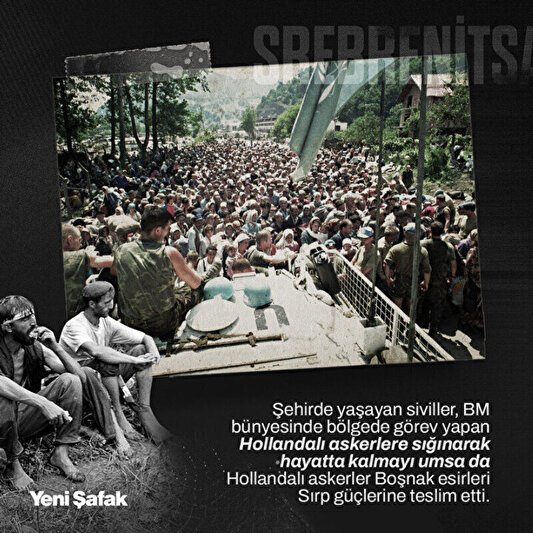 Srebrenitsa'nın 11 Temmuz 1995'te Ratko Mladic komutasındaki Sırp birliklerince işgal edilmesinin ardından Birleşmiş Milletler (BM) bünyesindeki Hollandalı askerlere sığınan sivil Boşnaklar, daha sonra Sırplara teslim edildi.