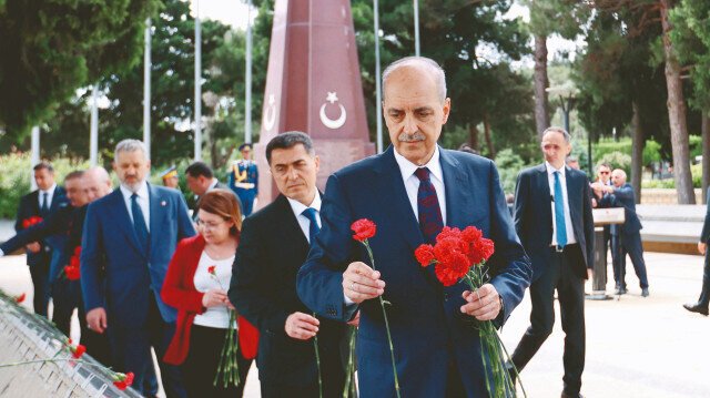 Türkiye Büyük Millet Meclisi (TBMM) Başkanı Numan Kurtulmuş, resmi temaslar için bulunduğu Azerbaycan’da şehitlikleri ziyaret etti. 20 Ocak şehitlerinin defnedildiği Şehitler Hıyabanı’nı da ziyaret eden Kurtulmuş, buradaki Ebedi Ateş Anıtı’na da çelenk koydu. Kurtulmuş, ziyaret sonrasında basın mensuplarına yaptığı açıklamada, “Türkiye’nin Doğu Akdeniz’de KKTC ile olan ilişkisi, Kafkaslarda da Azerbaycan’la olan ilişkisi fevkalade önemlidir. Stratejik açıdan da son derece değerli ve fevkalade önem verdiğimiz bir ilişkidir. Azerbaycan’ın güçlü olması, Türkiye’nin de güçlü olması demektir. Aynı şekilde KKTC’nin güçlü olması, Türkiye’nin güçlü olması demektir” dedi.