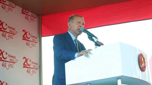 Cumhurbaşkanı Recep Tayyip Erdoğan KKTC Cumhurbaşkanı Ersin Tatar ile Dr. Fazıl Küçük Bulvarı'nda düzenlenen 20 Temmuz Barış ve Özgürlük Bayramı Resmi Töreni'nde, Kıbrıs Barış Harekatı’nın 49'uncu yıl dönümünde bulunmaktan büyük bahtiyarlık duyduğunu söyledi.
