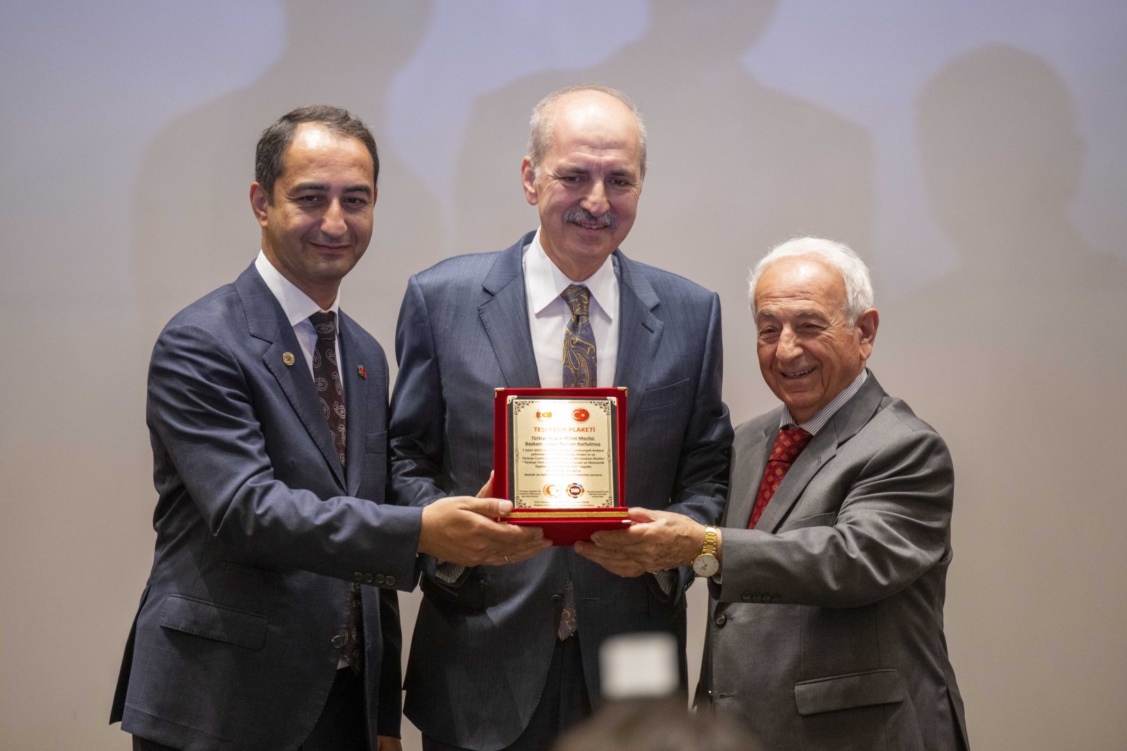 Türk Dünyası Aksakalları Sivil İnisiyatifi Başkanı Südeyif İmamverdiyev ve Türkiye'deki Azerbaycanlı İş İnsanları Birliği Yönetim Kurulu Başkanı, AZ Holding Yönetim Kurulu Başkanı Elşen Guliyev tarafından AK Parti Genel Başkanvekili Efkan Ala ve MHP Genel Başkan Yardımcısı Kamil Aydın'a konferansa katkılarından dolayı plaket verdi.