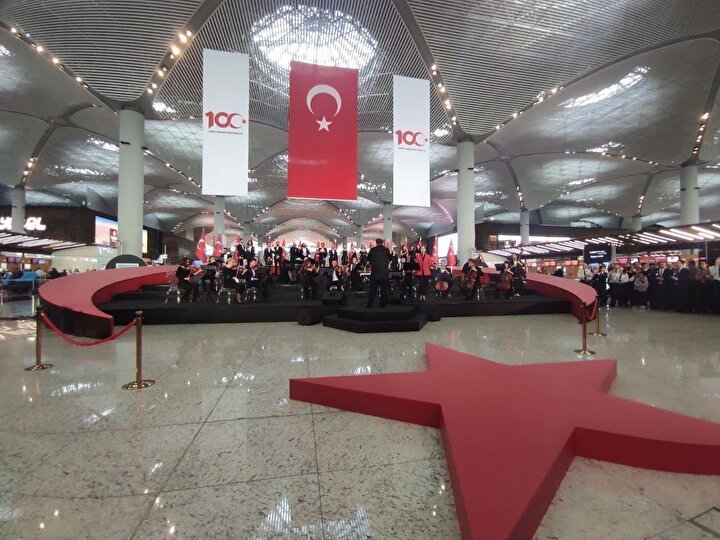 İstanbul Havalimanı'nda Cumhuriyet'in 100. yıl dönümü kapsamında tören düzenlendi.