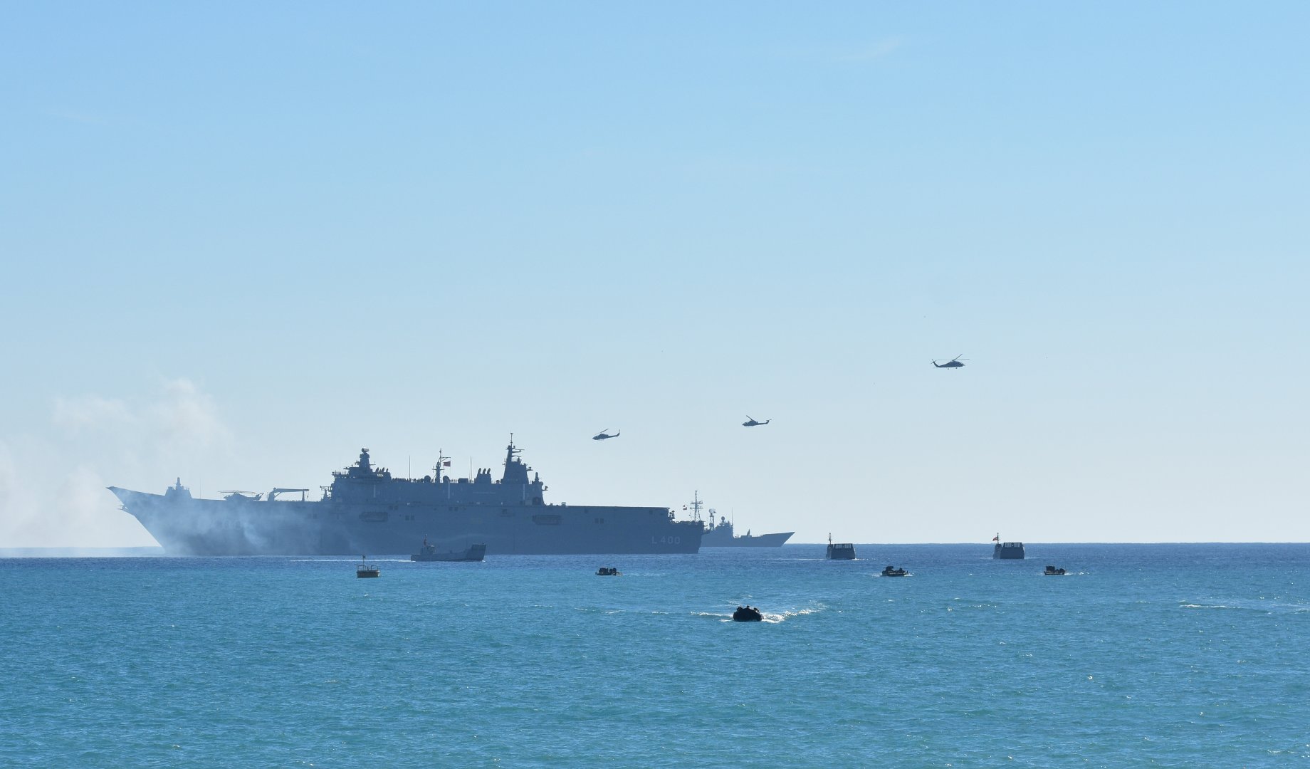 Bu sırada gemideki diğer amfibi deniz piyade birlikleri askeri helikopterlerle Sarısu Sahili'ne inerek kıyı emniyeti aldı.