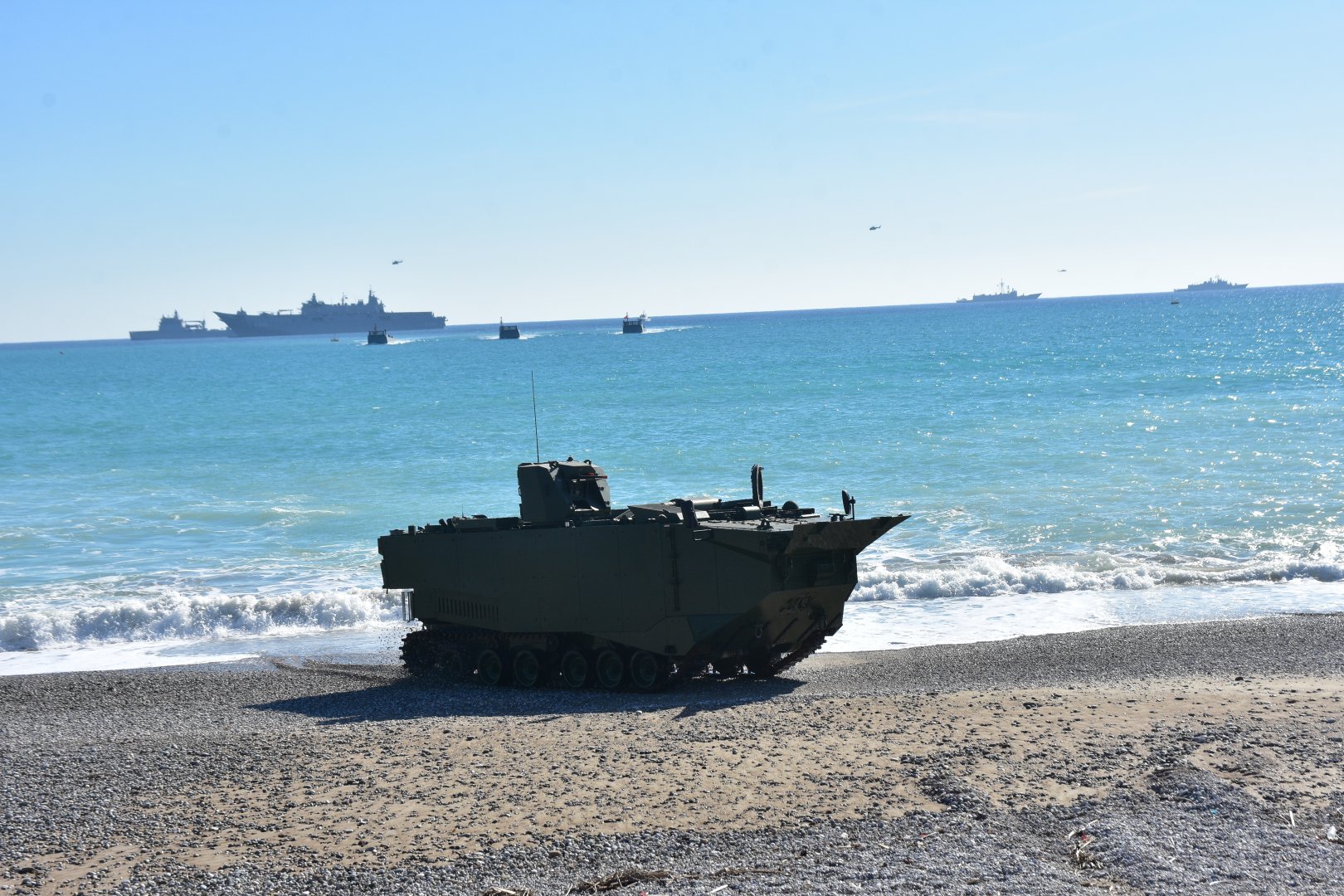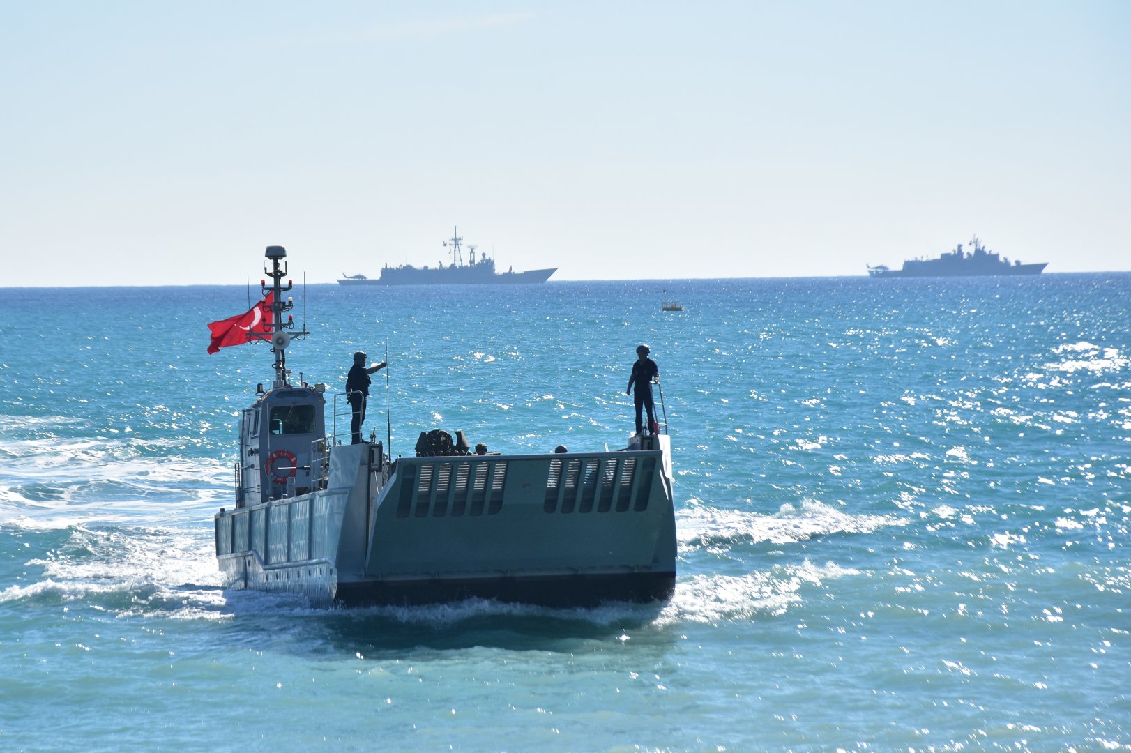 Kıyıya içerisinde zırhlı personel taşıyıcının bulunduğu LCM ve ZAHA'larla ulaşan birlikler, sivil vatandaşları başarıyla alarak TCG Anadolu gemisine ulaştırdı.