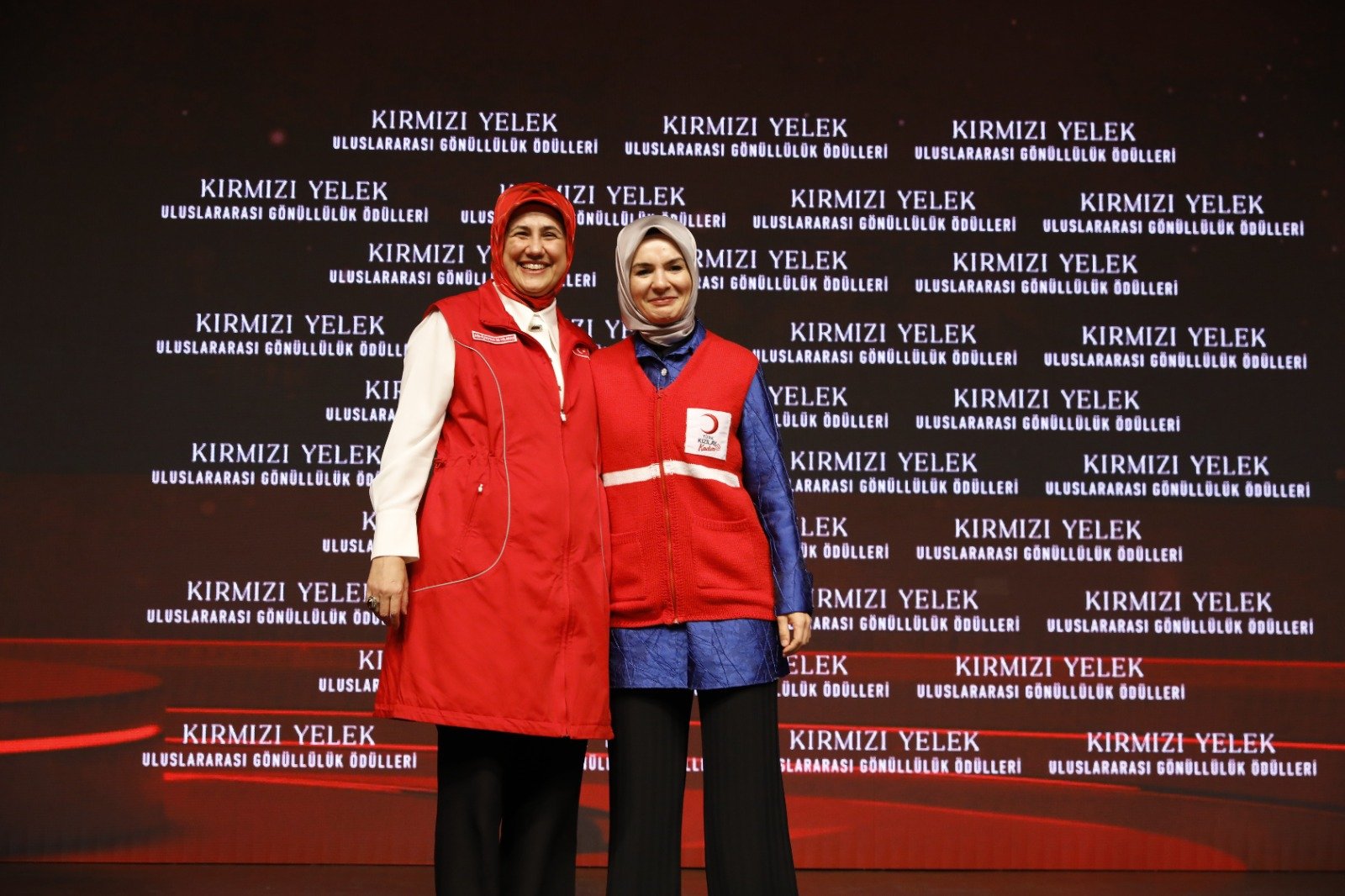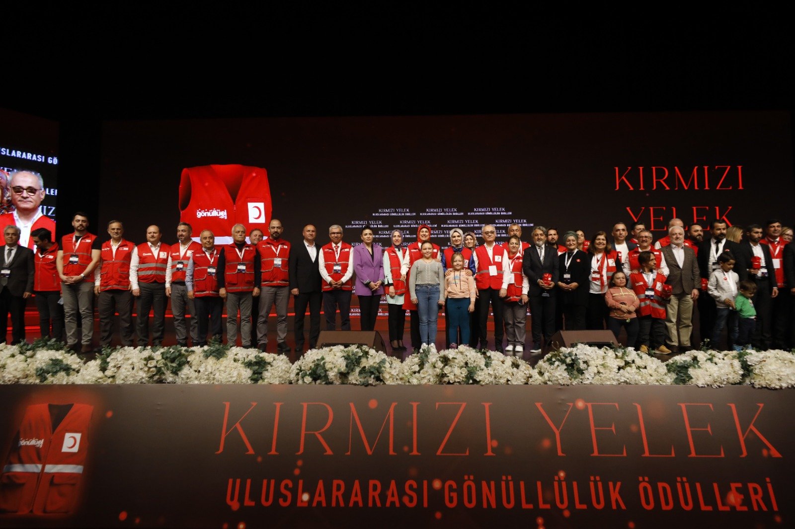 Aile ve Sosyal Hizmetler Bakanı Mahinur Özdemir Göktaş ise konuşmasına yakın koruma ekibinde yer alan ve üç gün önce şehit düşen polis Musa Erdem'i anarak başladı. Depremde hayatını kaybedenler için rahmet dileyen Göktaş, "Kırmızı Yelek Uluslararası Gönüllülük Ödül Töreni vesilesiyle yüreği iyilikle çarpan bu güzide toplulukla bir arada olmaktan büyük mutluluk duyuyorum. Her biri birer kahraman, iyilik timsali, insanlığın yüz akı olmuş kırmızı yeleklilerle dolu bu salon, Türkiye'nin geleceğine, insanlığın geleceğine, merhametin bu topraklarda nice yıllar hüküm süreceğine dair olan inancımın tazelenmesine vesile oldu. İyi ki varsınız. Gönüllülüğün geleneksel olarak ödüllendirilmesi inanıyorum ki toplumsal hayatımızı daha iyi hale getirecek. Sizler çocuklarımıza örneksiniz. Gelecek nesillere umutla baktığımızın örneğisiniz. Genç gönüllerde aslında bunun birer örneği" diye konuştu.