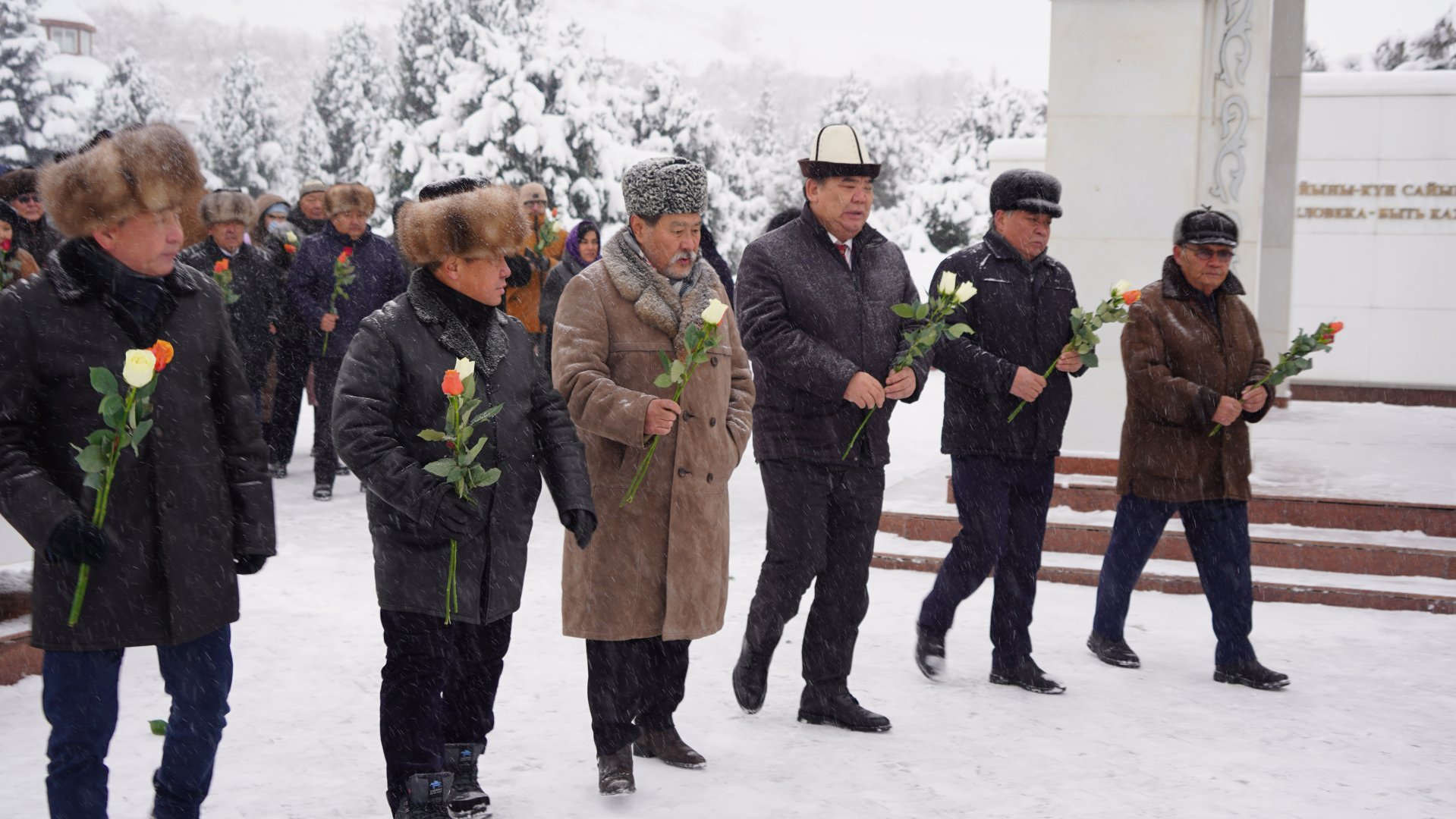 Kırgız yazar, yoğun kar yağışına rağmen bilim insanları, meslektaşları, akrabaları, ailesi ve sevenleri tarafından kabri başında da anıldı.