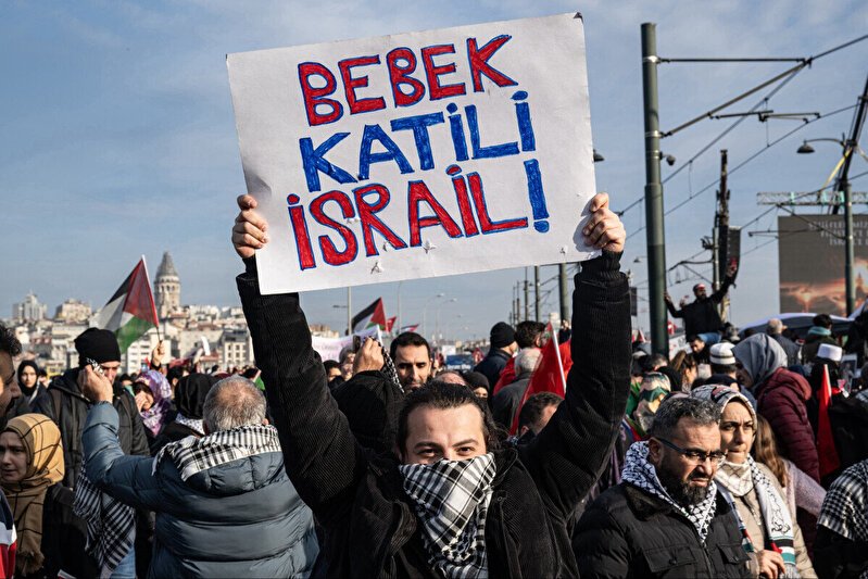 Hepinizi Allah'ın selamıyla selamlıyorum. 7 Ekim'de İsrail Naziliği binlerce çocuğu katletti. Biz bu sabah yılın ilk günün sabahında İstanbul'dan bütün dünyaya haykırmak istiyoruz. 12 şehidimizi de Filistin'de olup bitenleri de takip edenler olarak dünyaya haykırmak istiyoruz. Bizler kayıtsız kalamayız çünkü Kudüs bizim ilk kıblemiz. Çünkü