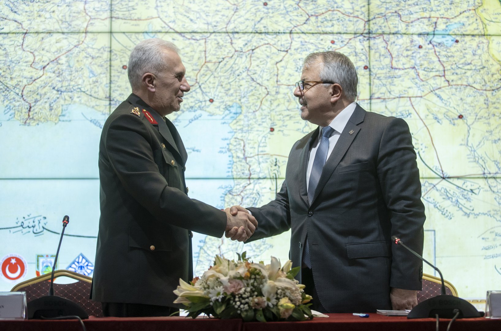 "Tarihi Haritaların Üretimi ve Eski Haritaların Yeni Türk Alfabesine Çevrilmesi/Envanterlerinin ve Bilgi Sisteminin Oluşturulmasına İlişkin İş Birliği Protokolü"nde TTK Başkanı Çetin ile Harita Genel Müdürü Tuğgeneral Hurşit Ağırcan'ın imzası bulunuyor.