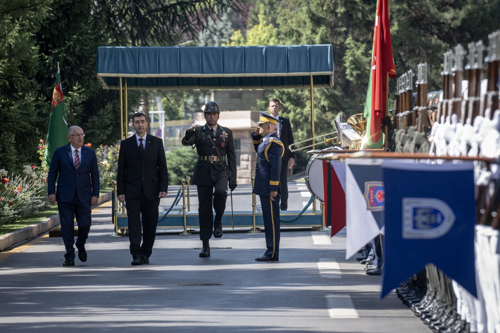 İki ülke marşlarının çalınmasının ardından konuk Bakan Gündogdiyev, onur kıtasını selamladı.