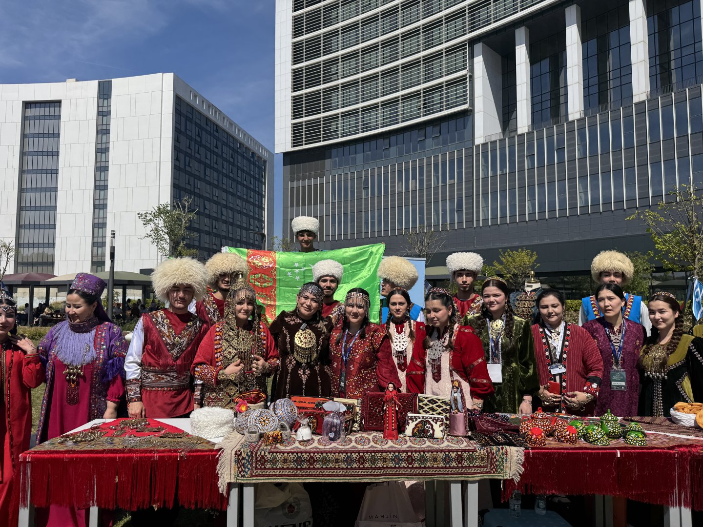 Türkmenistan standında bulunan Aziza Shukurova ise çok heyecanlı olduklarını dile getirerek, "Çünkü yabancı bir ülkede kendi ülkemizi temsil etmek gurur verici. Bunun yanı sıra kendi kültürümüzü, yemeklerimizi arkadaşlarımıza tanıtmak bizim için gerçekten gururdur. Cumhurbaşkanımız ve bizi destekleyen ailemiz sayesinde yurt dışında eğitim alma hakkı kazandık ve gittiğimiz her yerde ülkemizi, Türkmenistan'ı en iyi şekilde temsil etmek için bütün gençlerimiz bir aradayız." dedi.