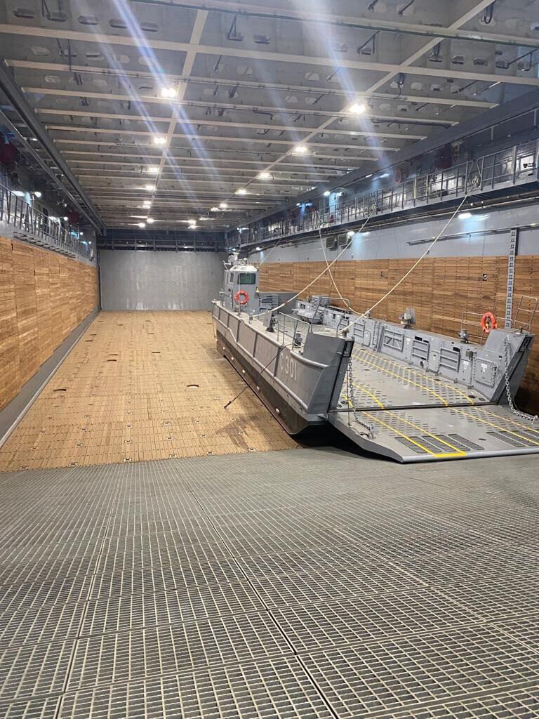 Her parçası özel ve ince işçilikle üretilen TCG Anadolu’nun havuz kısmında mekanize çıkarma gemilerinin altında bulunan tahtalar da özel olarak yapıldı. Teak ağacından yapılan tahtalar, ağır, sağlam ve dayanıklı olması nedeniyle geminin havuz kısmının uzun süre bozulmadan kalmasını ve yüksek ağırlıkların taşınmasını sağlayacak. Yapılacak olan bir kara operasyonunda havuzda bulunan mekanize çıkarma araçları ağır ve hafif kara araçlarını yüklenerek karaya yakın bir noktaya gidebilecek.