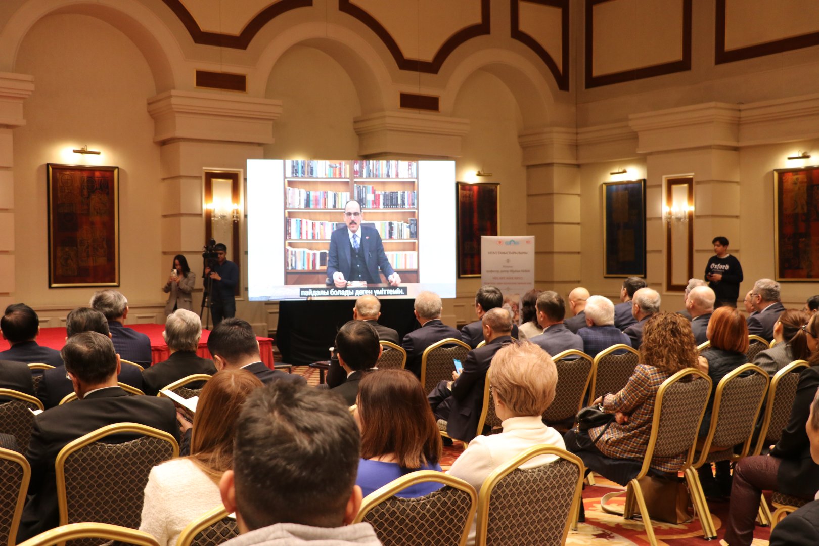 "Bir milletin öz benliğini ve kimliğini tanımlayabilmesine imkan sağlayan ana dilde yayınlar yapılması, eserlerin gelecek nesillere aktarılması, tabiatıyla çok önemlidir. 2021 yılında Kazakçanın Latin alfabesine uyarlanmış versiyonu kamuoyuna sunuldu. Önümüzdeki yıllarda, öngörüldüğü gibi Kazak dili Latin alfabesiyle kullanıldığı takdirde, aynı dil ailesine mensup akraba diller olan Türkçe ve Kazakça arasındaki bağlar daha da sıkılaşacaktır. Bu vesileyle Hoca Ahmet Yesevi Üniversitesi ve Avrasya Araştırma Enstitüsünü bu çalışmalarından ötürü kutluyor, özellikle Türkçe ve Kazakça dillerinde gelecekte yapacakları çalışmalarda da başarılar diliyorum."