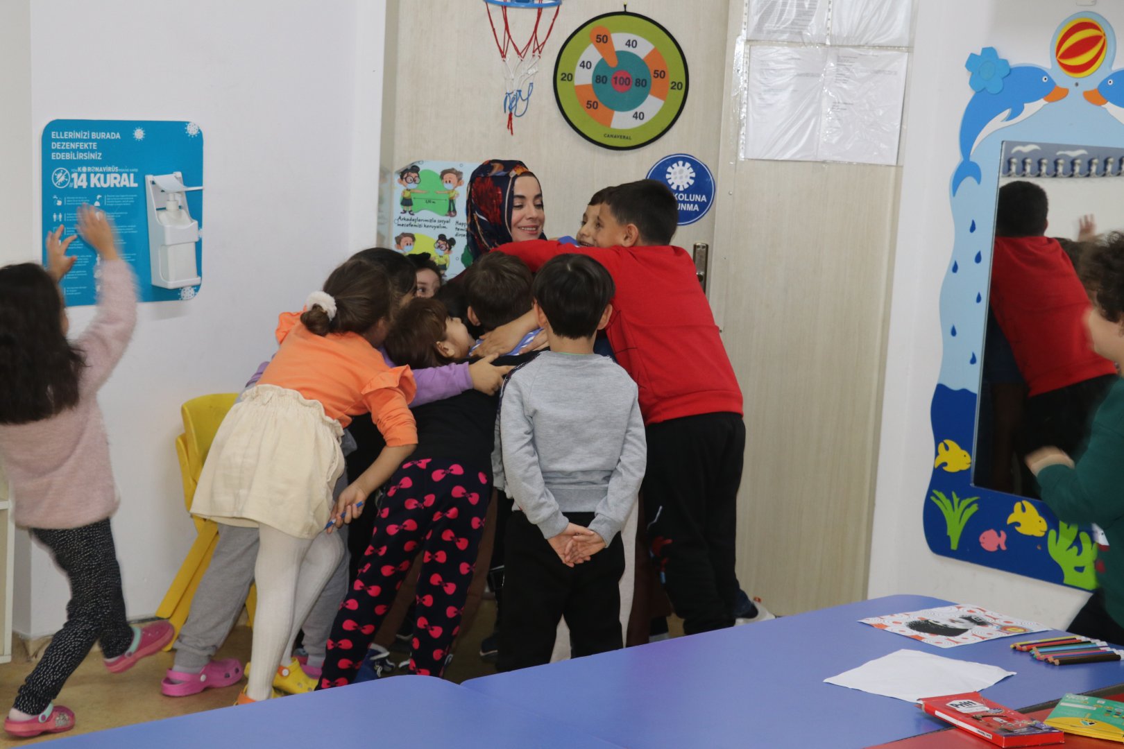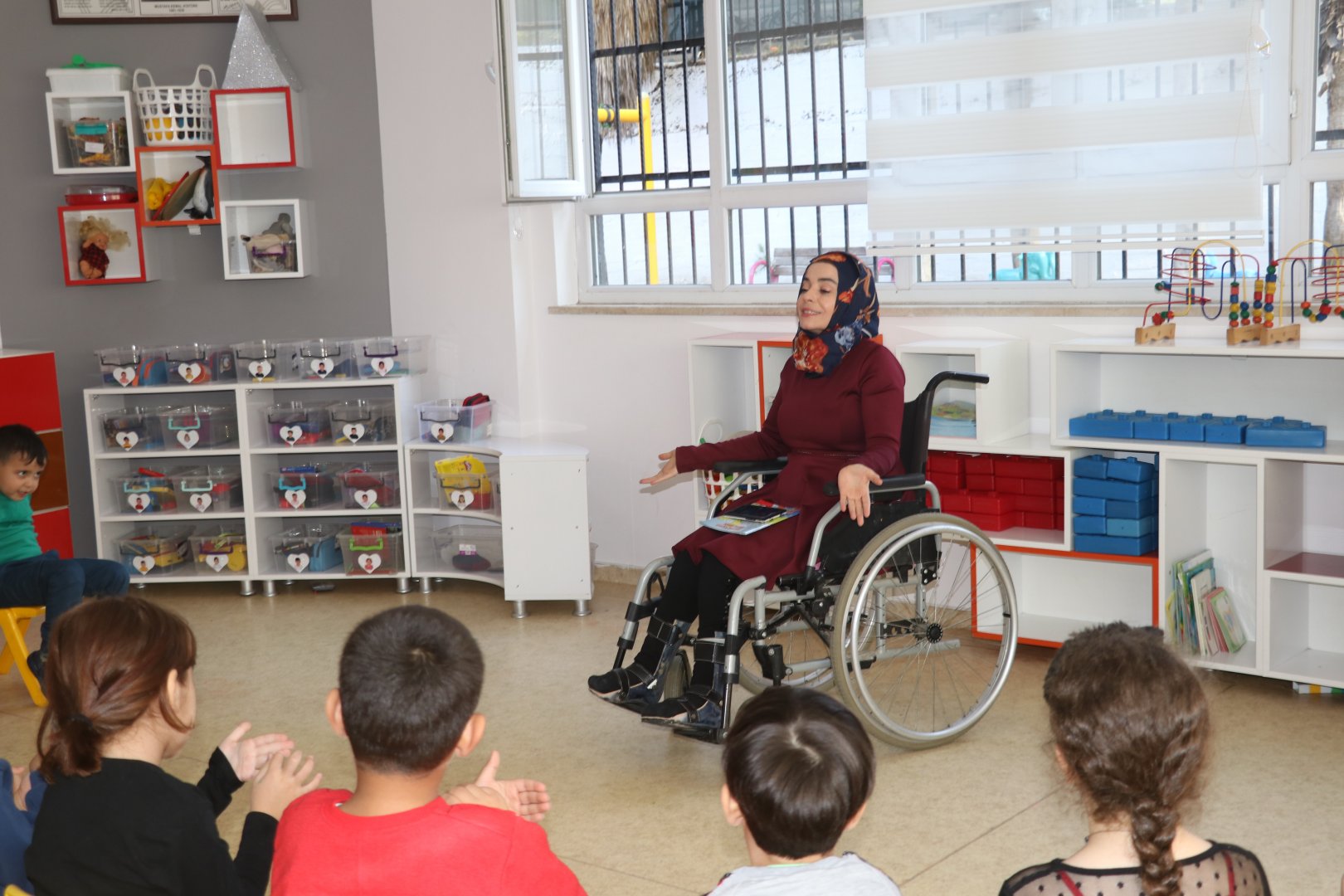 Adana'da 5 yıl önce trafik kazası sonucu belden aşağısı felç kalan ve bedensel engeli nedeniyle tekerlekli sandalyeye mahkum olan okul öncesi öğretmeni Tuba Bulat, tedavisinin ardından döndüğü mesleğini öğrencilerinin sevgisiyle yürütüyor.