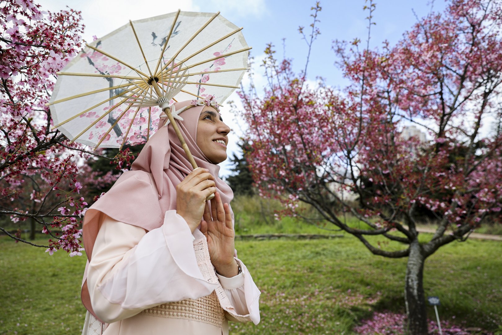 Ataşehir ve Ümraniye girişinde bulunan Nezahat Gökyiğit Botanik Bahçesi'nde çiçek açan sakuralar, bahçede görsel şölen oluşturdu. "Japon kiraz ağacı" olarak bilinen sakura ağaçları, ziyaretçilere ilkbahar güzelliği sunuyor.