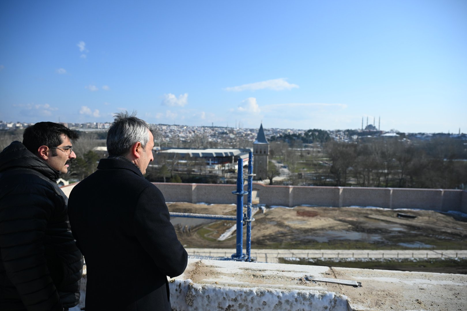 Edirne Valisi Yunus Sezer, Edirne Cumhuriyet Başsavcısı Mustafa Çakmak ile çalışmaları yerinde inceleyerek, Milli Saraylar Edirne Sorumlusu Mert Can Polat'tan bilgi aldı.