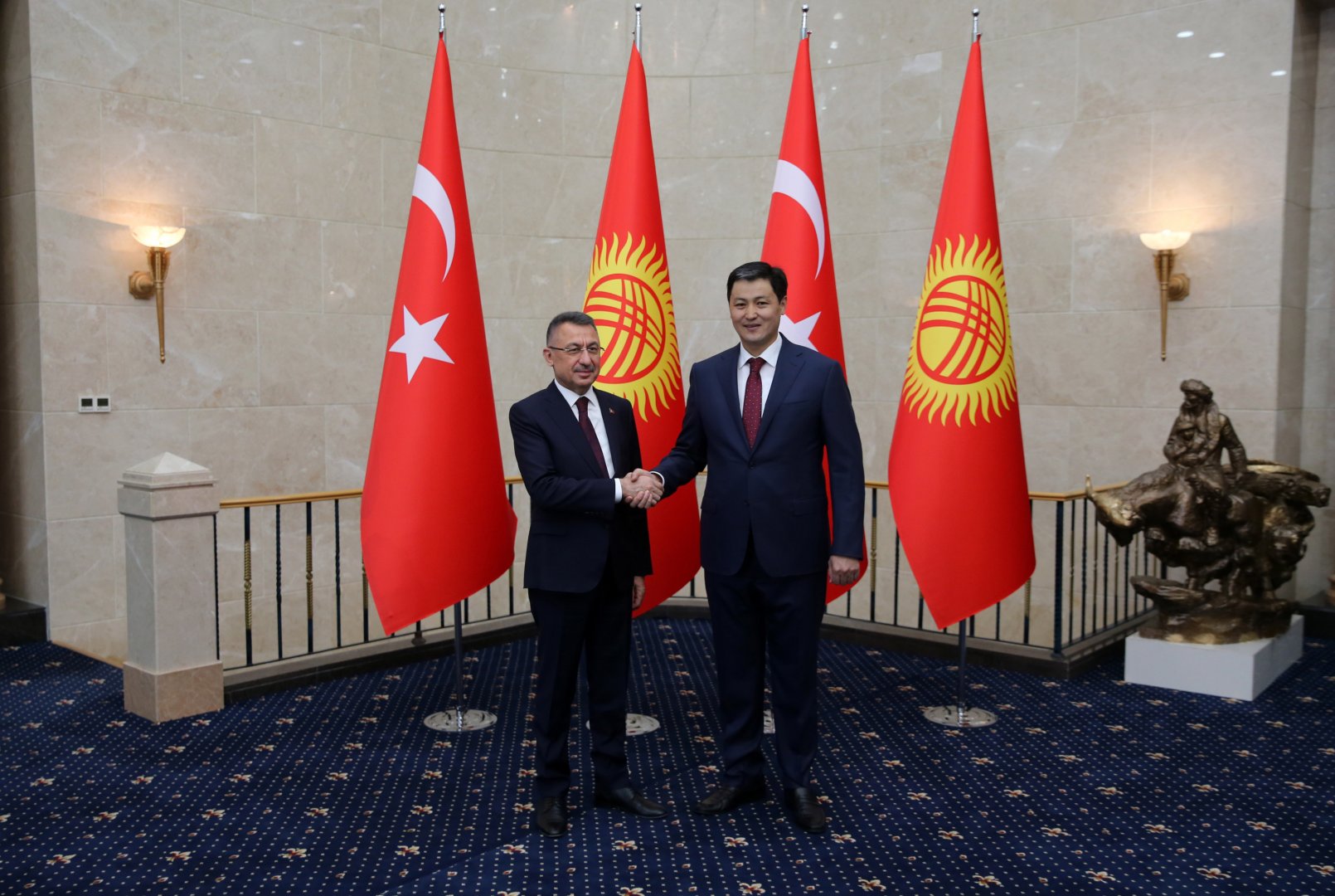 Cumhurbaşkanı Yardımcısı Fuat Oktay, Kırgızistan Bakanlar Kurulu Başkanı ve KEK Eşbaşkanı Ulukbek Maripov ile görüştü.