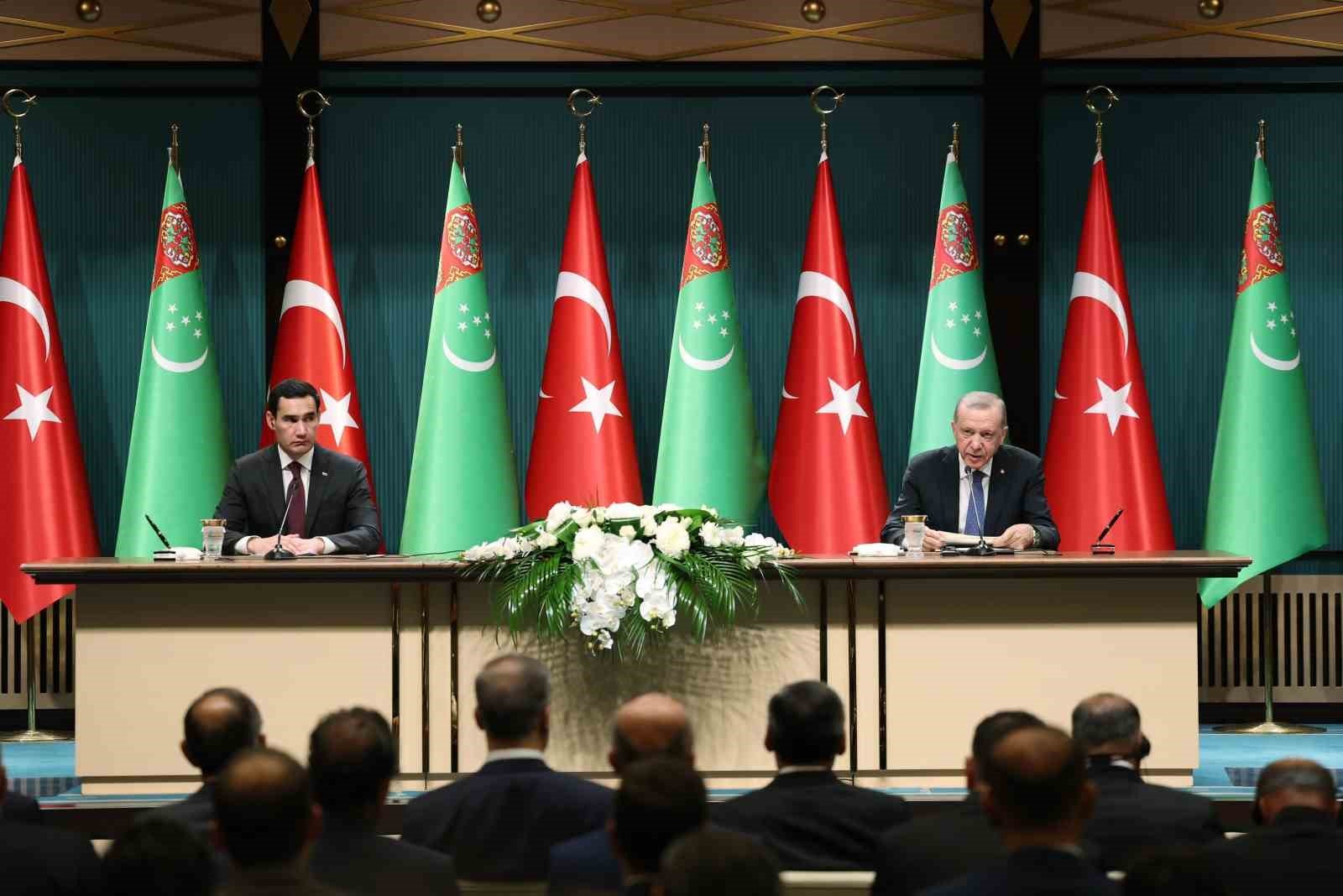 Burada konuşan Cumhurbaşkanı Erdoğan, Berdimuhamedov ve heyetini Ankara'da misafir etmekten duyduğu memnuniyeti dile getirdi.