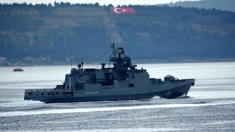 Çanakkale Boğazı'ndan geçen, Rus donanmasına ait savaş gemisi ’Admiral Grigorovich’, Marmara Denizine doğru yol aldı.