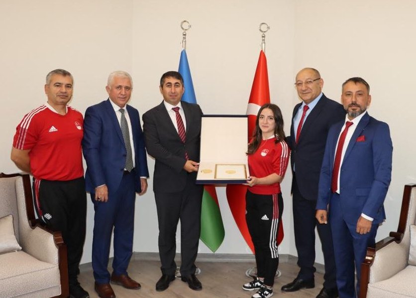 Azerbaycan'ın Ankara Büyükelçiliğinde düzenlenen madalya takdim törenine, Türkiye Halter Federasyonu Başkanı Talat Ünlü, asbaşkanlar İlker Özkan ve Yasin Arslan , milli takım teknik direktörü Ferhat Coşkun ile Ermenistan'daki Avrupa Halter Şampiyonası'nda 3 altın madalya kazanan Cansu Bektaş katıldı.