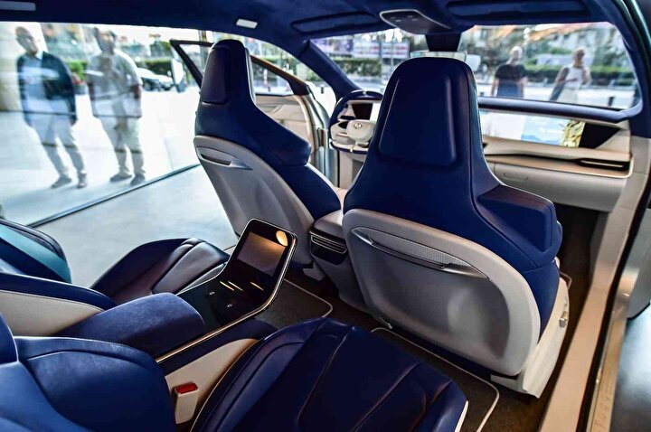 İç mekanda entegre emniyet kemerlerine sahip 4 adet tekli koltuk yer alırken orta sütunu ise ortadan kaldıran tasarımla kapıların bir kitap gibi açıldığı dikkat çekiyor. Ön koltuklarda açık renk deri kullanılırken, arka koltuklarda koyu renk tercihi göze çarpıyor.